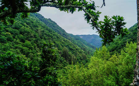 green mountains in natural forest background