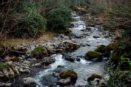 Beautiful landscape of the wild mountain river in the forest on the rocks in the Batumi, Adjara, Georgia
