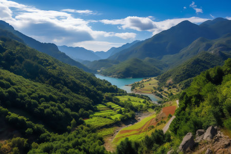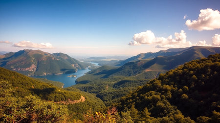 Generative AI : Aerial view of a valley with mountains on Laceno lake Irpinia Avellino Campania Italy