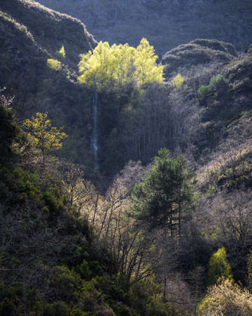 Fervenza de Bermui waterfall in Fragas do Eume river. Natural park in Way of St James. Peaceful