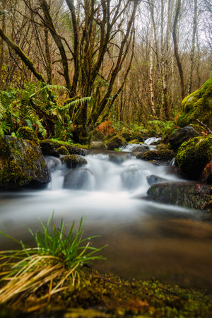 Beautiful water stream in Gresso river Portugal. Long exposure smooth effect.