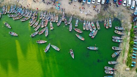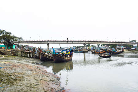 Harbor of different sized wooden fishing boat,where the boats are grounded very safely