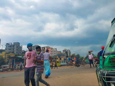 Dhaka,Bangladesh-July 13,2020:Rickshaw puller pulling rickshaw to earn daily living during corona pandemic with a mask on the face