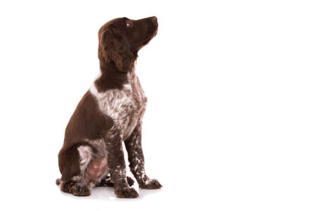 Small munsterlander puppy sitting isolated on white