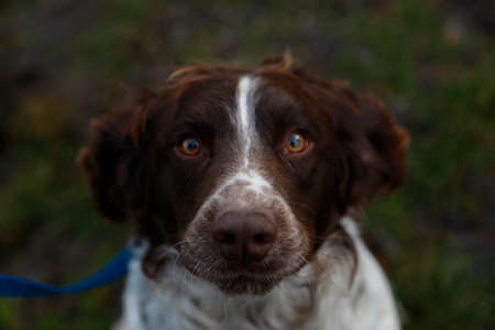 Portrait of a brown working type English springer spaniel. Wachtelhund