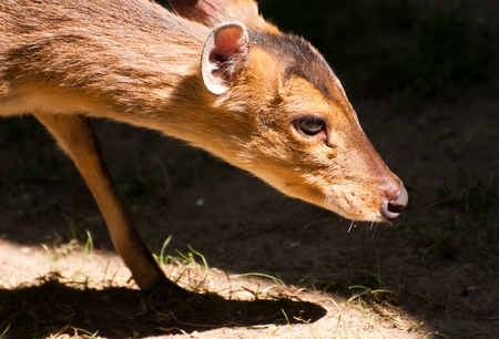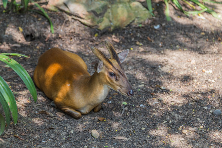 Small Chinese muntjaki in a zoo, an animal with small horns. new