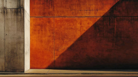 A striking image of an orange wall with a concrete edge and dramatic shadow, showcasing texture and light in an urban setting. Ideal for modern design.