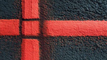 This close-up image features an abstract pattern of red lines intersecting on a dark textured surface. The vibrant colors and rough finish add depth and contrast, making it perfect for artistic and creative design projects.