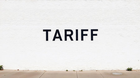 A white brick wall stands tall with the word TARIFF in black in the center of the wall. AI Generated.