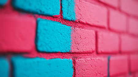 Colorful brick wall background. Pink and blue brick wall texture. Abstract background.