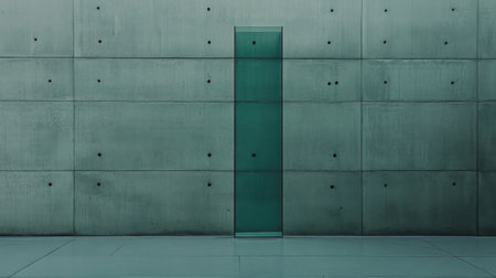 This image showcases a minimalist architectural design with a transparent glass door set against a textured concrete wall, creating a serene and modern atmosphere.