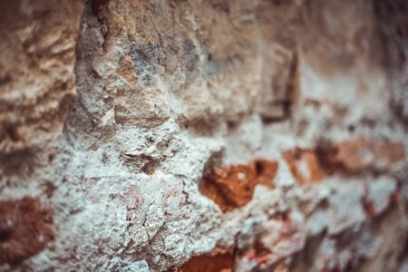 Shallow depth of field with Old vintage brick wall. Abstract architectural loft background for design.