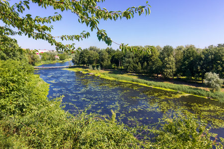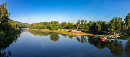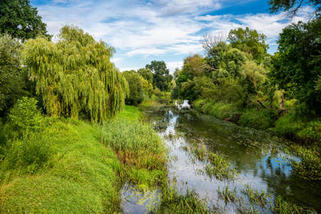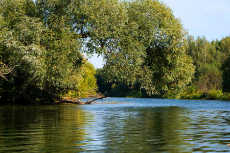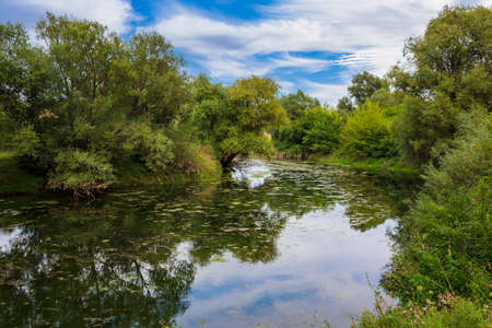 Sunny day on the quiet river in summer in Ukraine