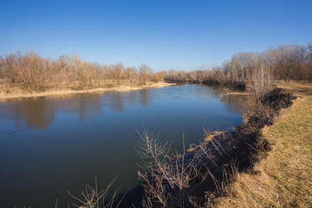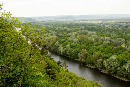 Amazing spring view on the Zbruch River, Ternopil and Khmelnytsky regions border, Ukraine.