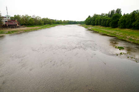 River in Uzhgorod, Ukraine with wind and little waves. Uzh River (Prypiat) in summer