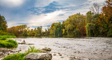 landscape with german river Isar at bavarian city Freising in autumn