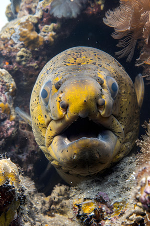 Portrait of a spotted moray eels in the reefs