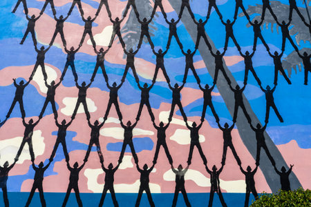 A colorful mural depicting faces from different ethnicities, celebrating global harmony