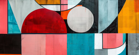 Modern art mural wallpaper background featuring bold color blocks and geometric shapes, forming a vibrant and eye-catching composition.