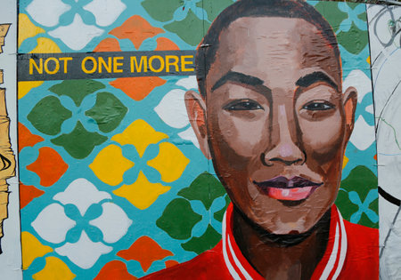 This striking mural reveals a black man's portrait, highlighted with vivid colors and bold street art influences, capturing the essence of urban creativity.