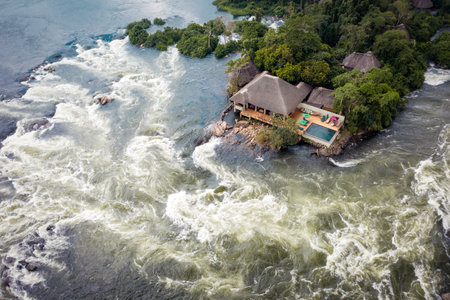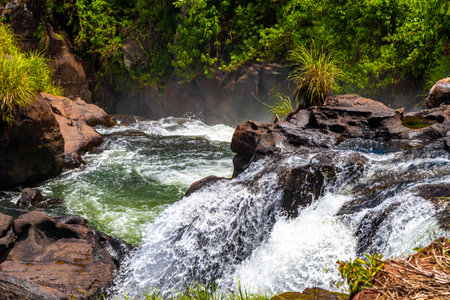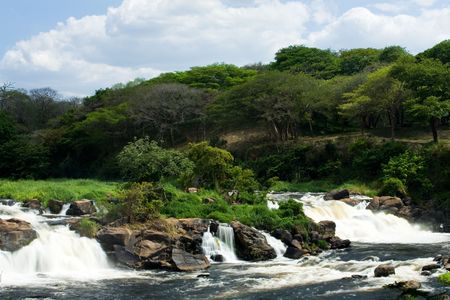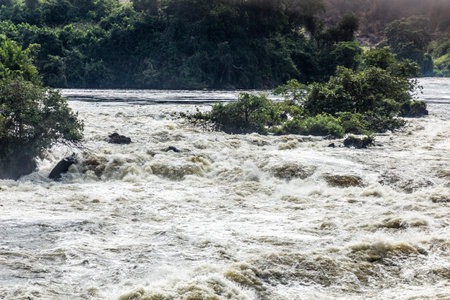Murchison Falls National Park Uganda, white water, rocks, roaring water in beautiful green forest
