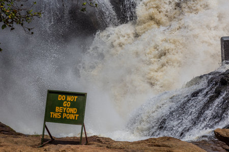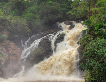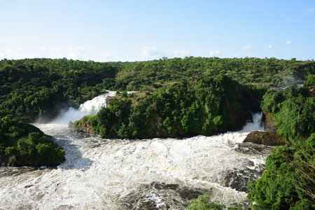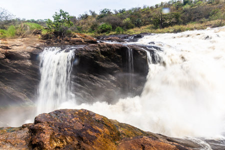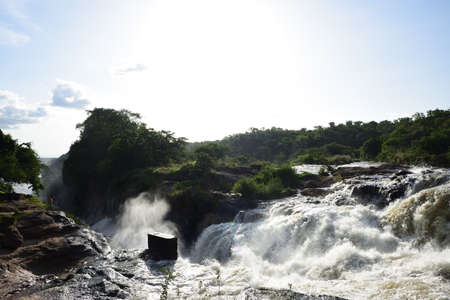 Murchison Falls National Park Uganda, Waterfall in beautiful green forest with white water, rocks, roaring water