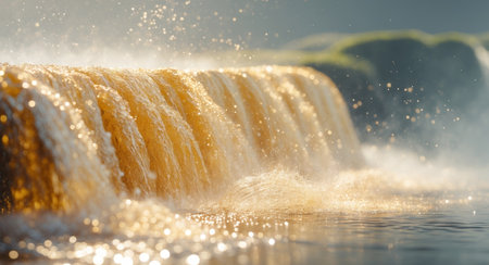 AI Generated. Golden Sparkling Waterfall with Shimmering Light Effects