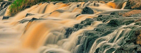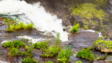 detail of the Murchison Falls with green overgrown rock formation in Uganda (Africa)
