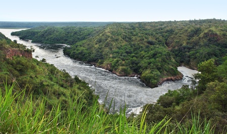 high angle scenery around the Murchison Falls in Uganda (Africa)