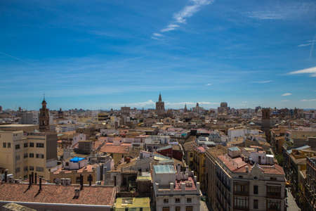 VALENCIA, SPAIN - MAY 2, 2017: city view fromTorres de Serranos, old gateway through ancient city wall with blue sky on background