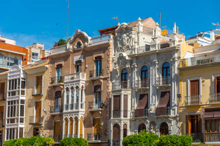 Beautiful facades of historical houses in Murcia, Spain