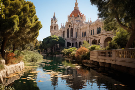Ciutadella Park in Barcelona, ??with Lake and Parliament Catalonia., generative AI
