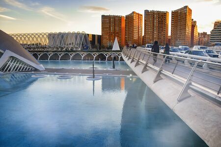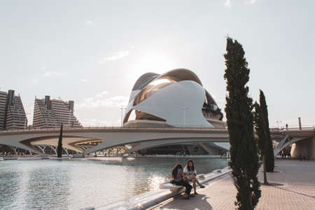 Valencia, Spain - January 4, 2019: Modern city landmark of the city of Valencia - the park complex Ciudad de las Artes y las Ciencias, Valencia, Spain.