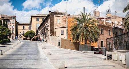 Toledo, Spain - April 28, 2018: Building architecture detail in the historic city center on a spring day