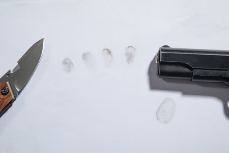 Pistol and knife on fingerprints ID for criminal.