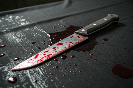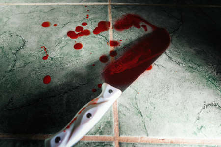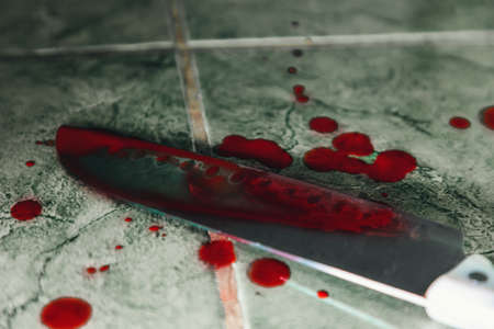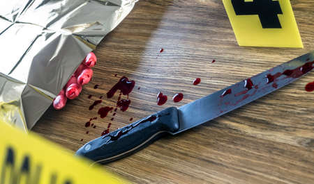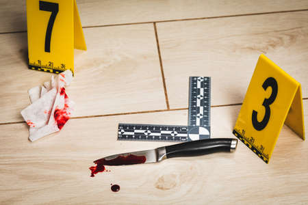 Crime scene investigation. Bloody knife. Evidence of murder.
