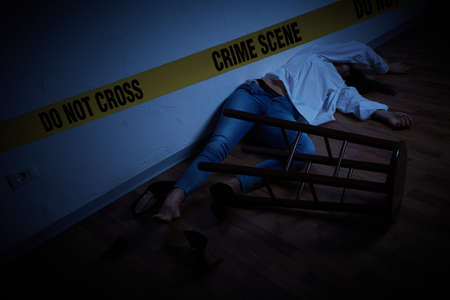 crime scene - woman lying dead on the floor