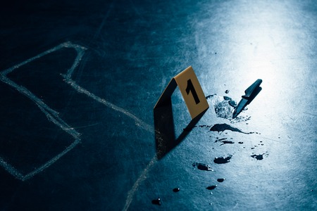 Crime scene for cutting weapon, Judicial police takes blood samples in scene of murder, conceptual image, conceptual image