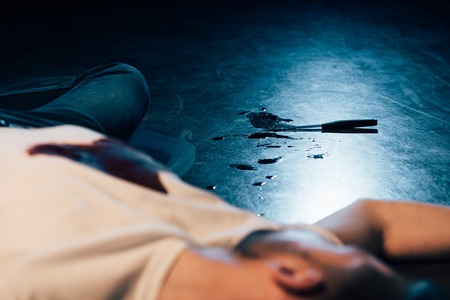 partial view of dead man on floor at crime scene
