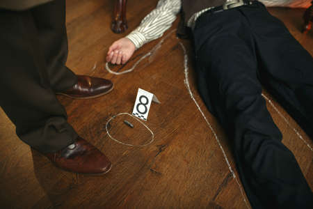 Detective and victims body circled with chalk