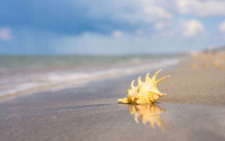 Exotic seashell on golden sand