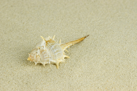White murex seashell on a beach sand