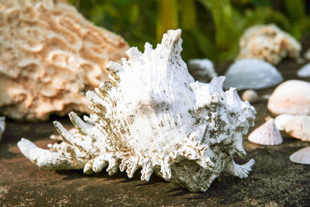 beautiful seashells by the sea on nature background
