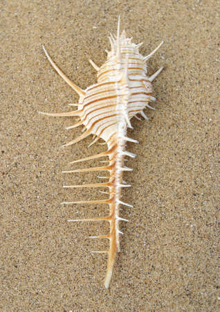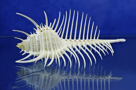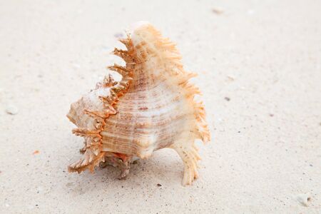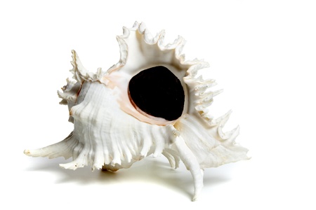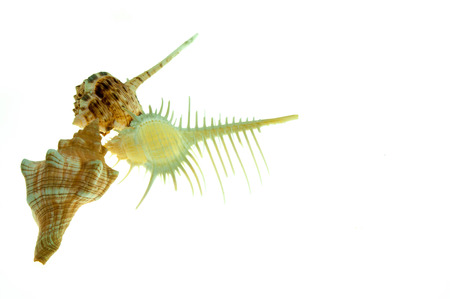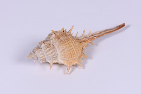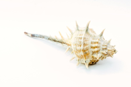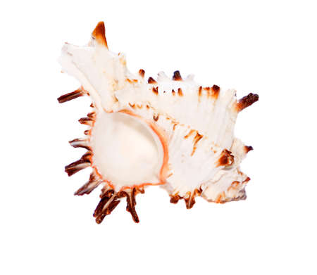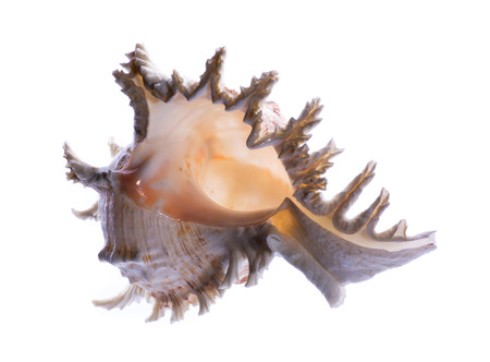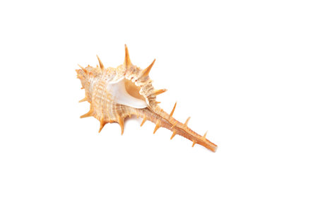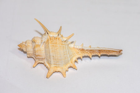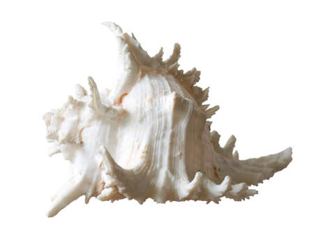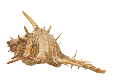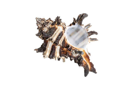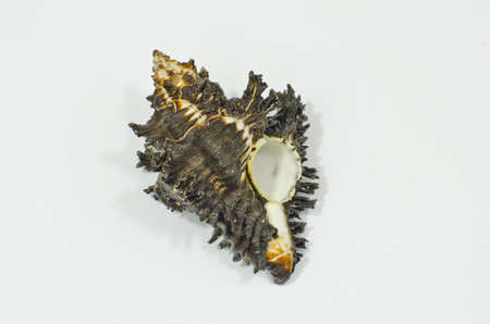 Shell of Murex Altispira or Caltrop Murex is a species sea snail, marine gastropod mollusk isolated on white background with clipping paths