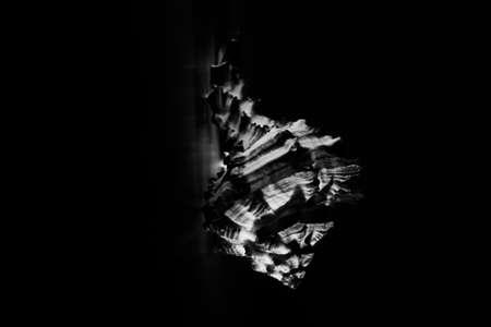 seashell on a black background, the play of light and shadow on the texture of a clam shell