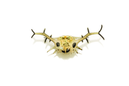 Close up of remaining of common Pasha (Herona marathus) caterpillar after its pupation on white background