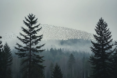 a flock of birds taking flight, their wings beating in unison, created with generative ai
