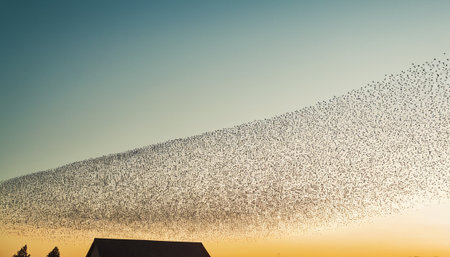 The natural phenomenon which occurs annually in UK of starlings migrating in very tight formation