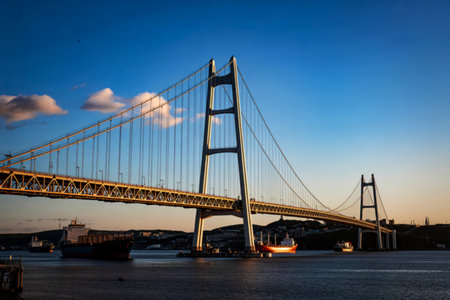 Shimonoseki Kanmon bridge and Kitakyushu Moji in Yamaguchi, Japan