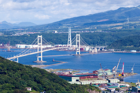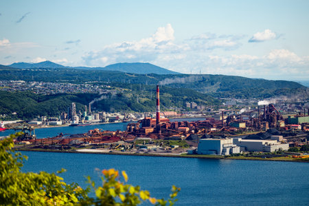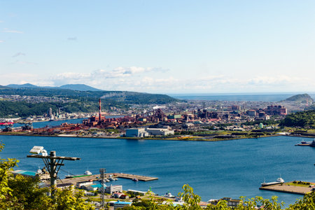 View of the summer blue sky and the industrial city of Kitakyushu, Fukuoka